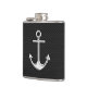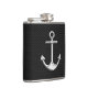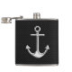 A modern nautical style silver chrome like applique on a racy black carbon fiber print decor for a fine custom flask gift.
