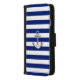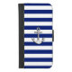 Chrome Anchor on Nautical Navy Blue Stripes Print iPhone Wallet Case