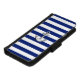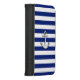 A Chrome Anchor look on Nautical Navy Blue Stripes on a custom phone case wallet.