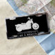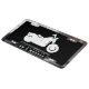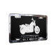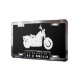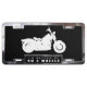 Features faux chrome cruiser motorcycle silhouette graphic and license plate frame. Great gift idea for any biker.