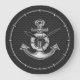 A silver chrome like lifesaver anchor design on a black carbon fiber style background decor. A racy modern nautical gift.