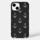 A nautical style silver anchors on a black carbon fiber print decor. A modern nautical gift for your device sure to make an impression on, or off the boat.
