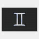 A silver chrome like Gemini zodiac symbol applique on a black snake skin design texture print background. A modern urban racy design for a great custom birthday gift idea.
