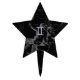 A silver chrome like Gemini zodiac symbol on a vintage Hevelius astrology constellation map print on black background. A mix of modern urban racy and vintage designs for a great custom birthday gift idea.