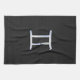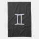 A silver chrome like Gemini zodiac symbol applique on a black snake skin design texture print background. A modern urban racy design for a great custom birthday gift idea.