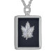 Chrome Like Maple Leaf on Carbon Fiber black Sterling Silver Necklace