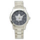 An all Canadian stylish maple leaf design fashion watch for all festive occasions and friendly gatherings. Presented here as a silver chrome like applique on a racy carbon fiber style background print. A great gift to wear or to share. A design statement that is sure to make an impression on formal and on casual occasions. Or perhaps a last minute gift for yourself or for someone special on your list.