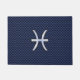 Chrome Like Pisces Sign on Blue Carbon Fiber Print Doormat