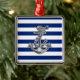 Chrome Like Rope Anchor on Nautical Stripes Metal Ornament