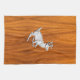 A silver chrome like running white tail deer on a teak wood grain style decor for a fine custom gift idea.