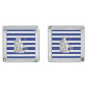Chrome Like Sail Boat Nautical Navy Blue Stripes Cufflinks