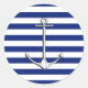 Chrome Like Thin Anchor on Nautical Stripes Classic Round Sticker