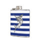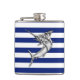 Chrome Marlin on Navy Stripes Hip Flask