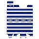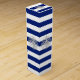 A modern nautical silver chrome like applique style on a blue stripes pattern for a custom wine box gift everyone on, or off the boat will enjoy.