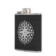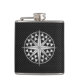 A modern nautical style silver chrome like applique on a racy black carbon fiber print decor for a fine custom flask gift.