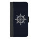 Chrome Nautical Wheel Print on Navy Carbon Fiber iPhone Wallet Case