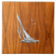 A silver chrome like regatta sailboat scene on a teak wood grain style background decor. A racy modern nautical gift.