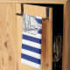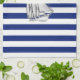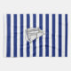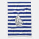 A silver chrome like regatta sail boat design on a navy blue stripes decor. A modern nautical sailboat gift.