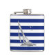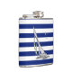 A modern nautical silver like applique style on a navy blue stripes pattern decor for a fine custom gift.