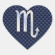 Chrome Scorpio Zodiac Sign on Blue Carbon Fiber Heart Sticker