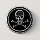 CHROME SKULL AND CROSSBONES PINBACK BUTTON