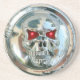 Cool,vibrant and expressive design with metallic reflections .Photograpy and digital elaboration of an awesome round chrome skull with bright 3D gem stones .