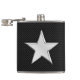 A modern nautical style silver chrome like applique on a racy black carbon fiber print decor for a fine custom flask gift.