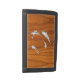 Chrome Style Diver with Sharks on Teak Veneer Trifold Wallet