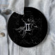 A silver chrome like Gemini zodiac symbol on a vintage Hevelius astrology constellation map on black background. A mix of modern urban racy and vintage designs for a great custom birthday gift idea.