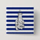 Chrome Style Lighthouse on Blue Nautical Stripes Button