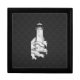 A silver chrome like lighthouse applique design on a carbon fiber style background decor. A racy modern nautical gift.