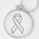 Chrome White Ribbon Awareness on Checkers Decor Keychain
