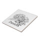 Chrysanthemum Black Line Drawing with Your Name Ceramic Tile