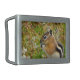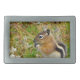 Chubby cute chipmunk on on wood stump rectangular belt buckle