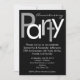 Festive modern anniversary party invitation, customize with any year on back. Fun and cheerful block style lettering in bold high contrast black and white typeface on black background. Sleek contemporary design is perfect for any party invitations. Example shows 25th party, but use any year celebration! Customize online with your event details.