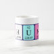 Chunli spelled out as C H U N Li (Carbon Hydrogen Uranium Nitrogen Lithium) on a mug for the scientist in you.