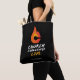 Church Challenge Orange Flame black tote bag, showing an orange flame, with CHURCH CHALLENGE LIVE in white and orange typography. The design is repeated on the reverse.