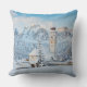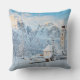 Church covered in snow with mountain background throw pillow