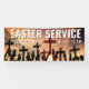 Advertise your Easter Service Times with this large banner featuring crosses with a beautiful sunrise background.