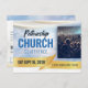 An attractive professional postcard that is a great fit for church events, but is generic enough to be for any event or conference. The front part has a faded sky background, with gold touches and ribbons throughout, and an editable square image on the front. All information is editable on the postcard, including the ticket information in the circles. Font colours can be changed in the Editor.