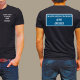 A simple modern minimalistic design with the name of your Church (or add your logo) and the Greeter's name. Text on front and back of tshirt.