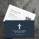 Church Pastor Modern QR code Religious Cross Navy Business Card