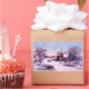 Church on a white Christmas Eve morning. A winter scene with people walking and riding in horse-drawn carriages to Christian services. Rural country with a stone bridge over a stream, Trees and farmland. Sky is Blue and pink with white clouds. This Vintage artwork is from 1898 painted by Andrew Melrose and in Public Domain.
