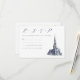 This formal RSVP card features a vintage illustration of a church, which you can replace with an image of your wedding venue (transparent or white background preferred). Elegant dark blue lettering lays out the title, whether the guest will accept or decline, and the date to respond by.