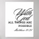 Matthew 19:26, With God all things are possible. Christian Minimalist Quote. Black script typography. Great for your church—wall decor.