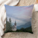 Photo throw pillow cushion with colorful clouds in the sky during sunset over the Maria Gern church with a view towards big Watzmann mountain in the German Alps near the border with Austria in Berchtesgaden in Bavaria, Germany.