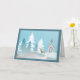 Illustrated holiday greeting card with church, trees , snow & a deer.