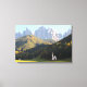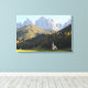 Canvas landscape print of the church of San Giovanni in Ranui (Sankt Johann) in front of the Geisler or Odle dolomites mountain peaks in Santa Maddalena (Sankt Magdalena) in the Val di Funes in Italy.