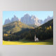 Church with Dolomites mountain background Poster