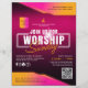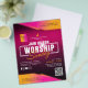 QR Code Church Worship Sunday Marketing Advertisement Flyer Features Metallic Purple, Pink & Orange Gradient Colors, Bold Typography, & Glow. Customize Flyer To Your Liking.